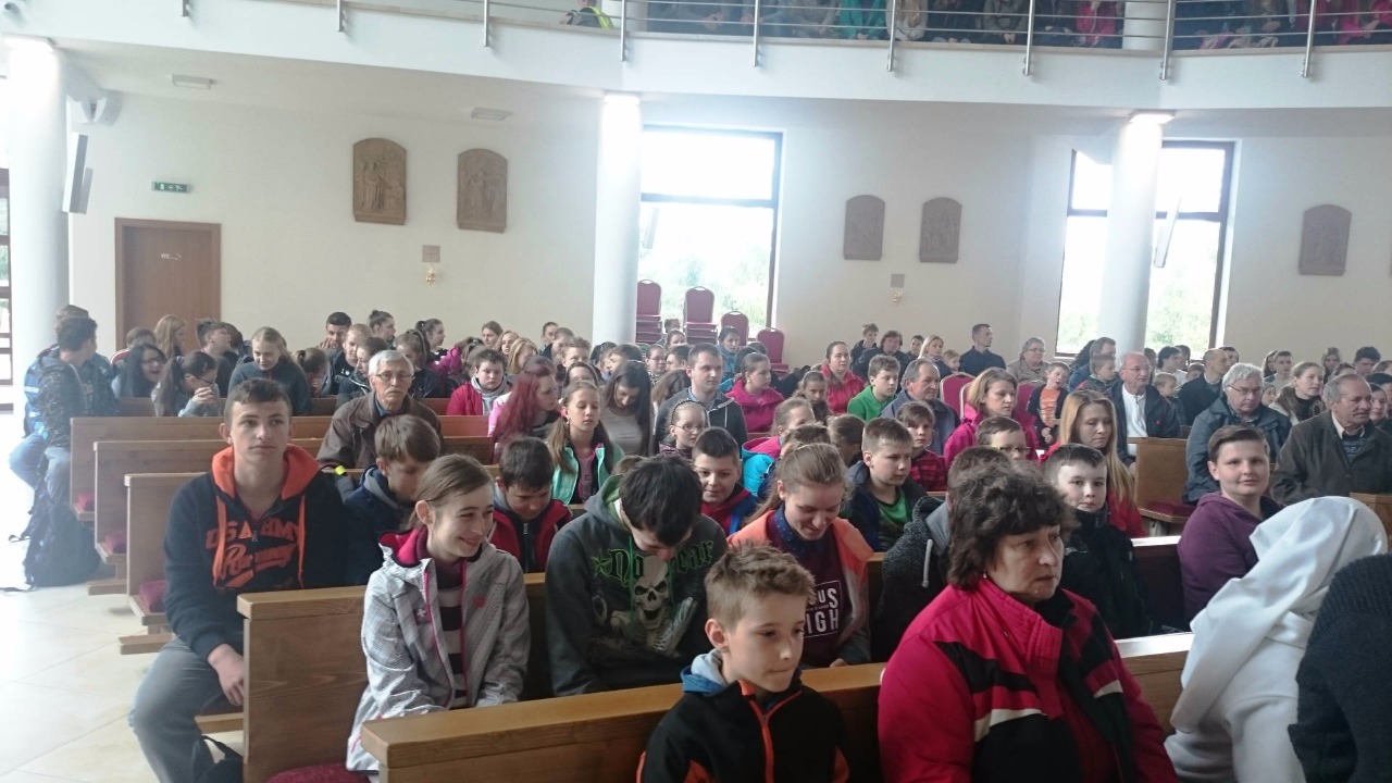 Púť na Živčakovú 18.05.2016 13:59 Dňa 5.mája ročníky 5-9 putovali na Živčákovú. Najskôr sme išli k prameňom a potom do kostola na omšu. Omše sa zúčastnil aj náš žilinský biskup.